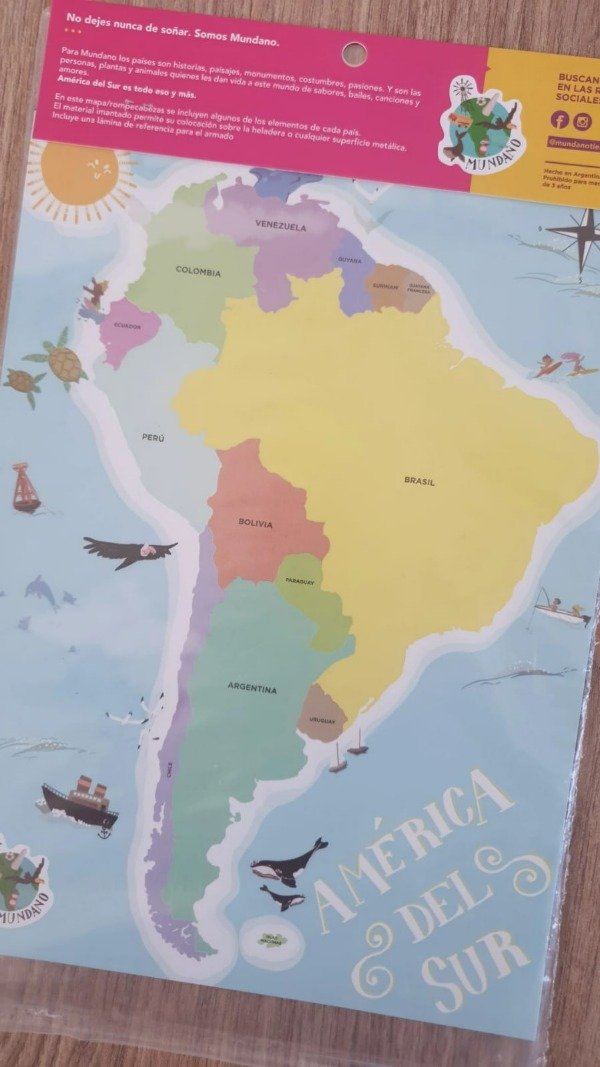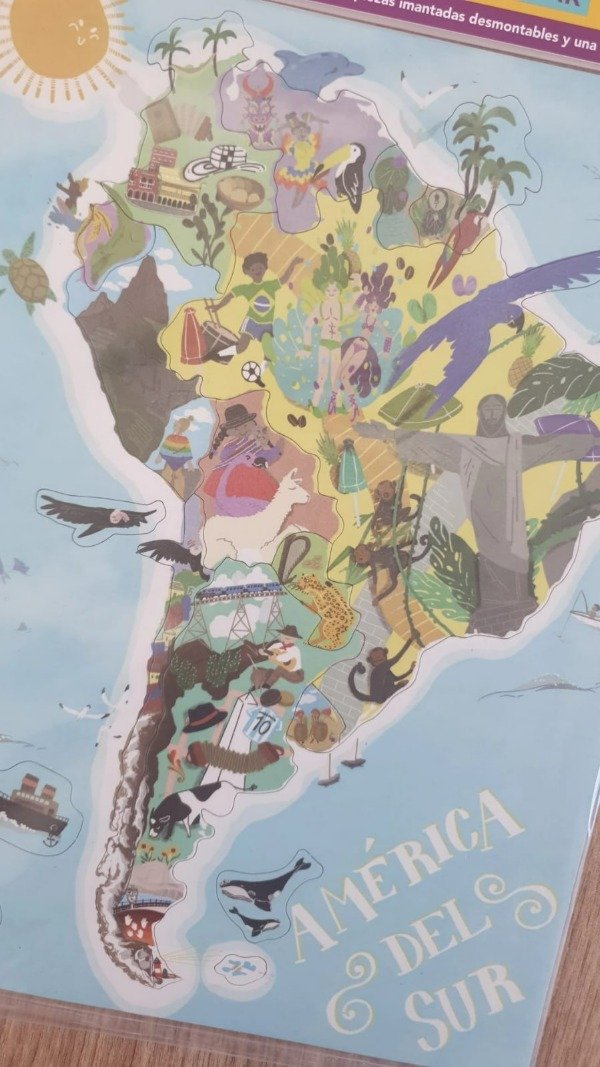 En este mapa/rompecabezas se incluyen algunos de los elementos de cada provincia. Continne 18 piezas imantadas y una lámina de referencia para armarlo.