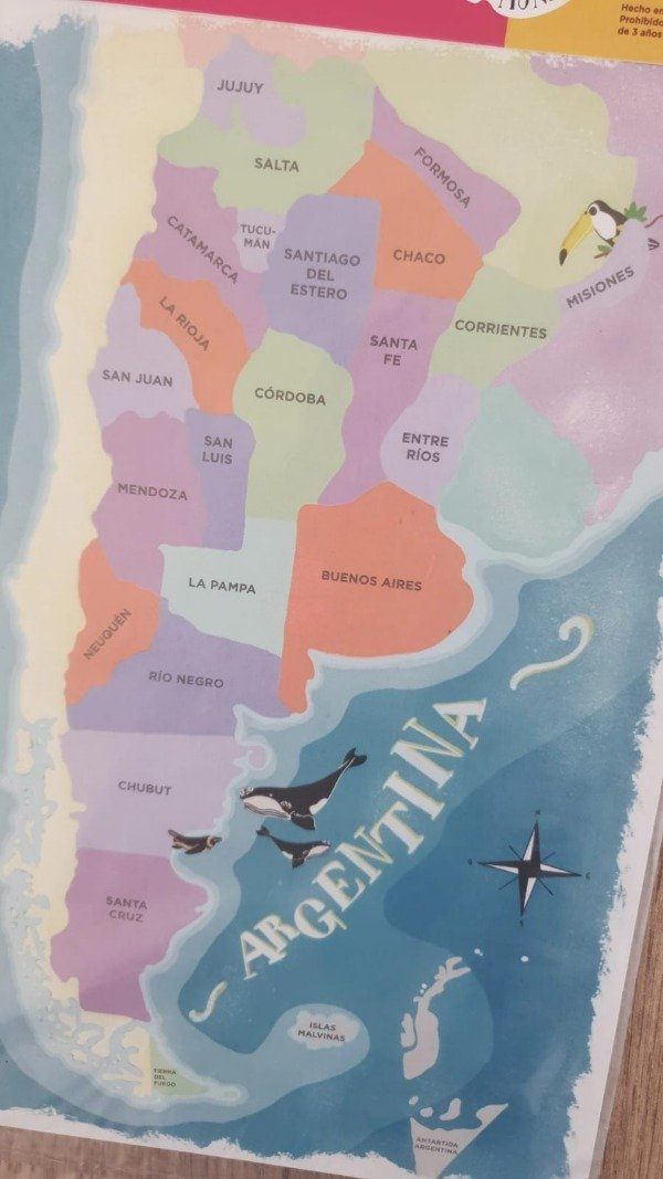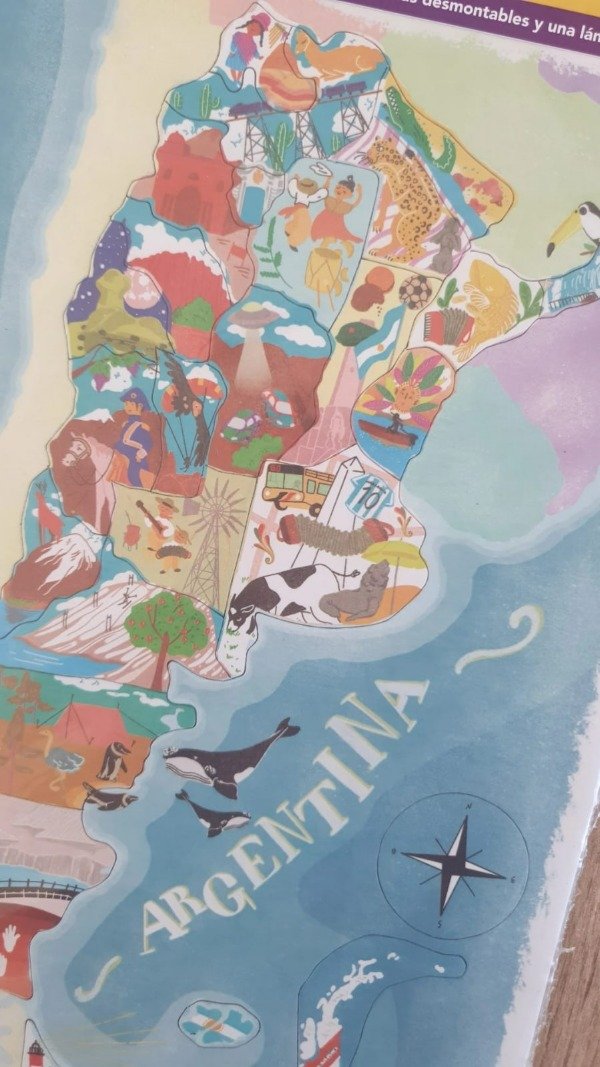 En este mapa/rompecabezas se incluyen algunos de los elementos de cada provincia. Continne 27 piezas imantadas y una lámina de referencia para armarlo.