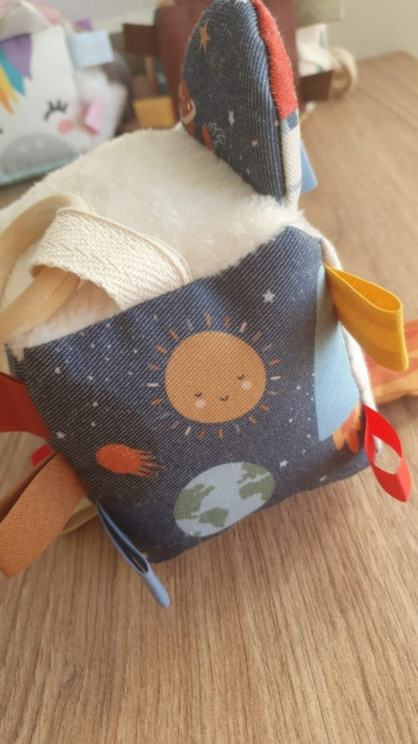 Cubo sensorial con diversas texturas, colores, sonido y distintos tipos de elementos de agarre y manipulación para esimular y explorar. Súper liviano en un tamaño ideal de 10x10cm para que tu bebé pueda manipularlo con facilidad.