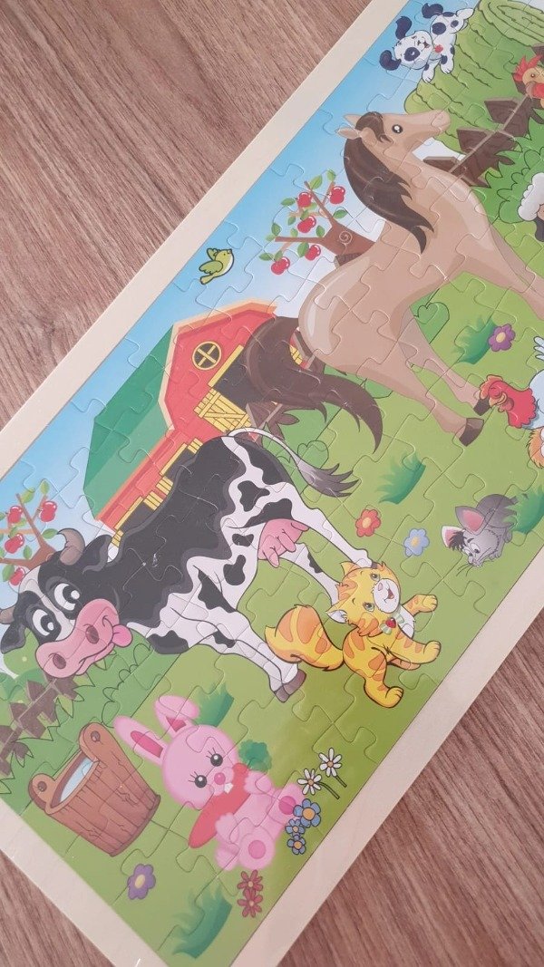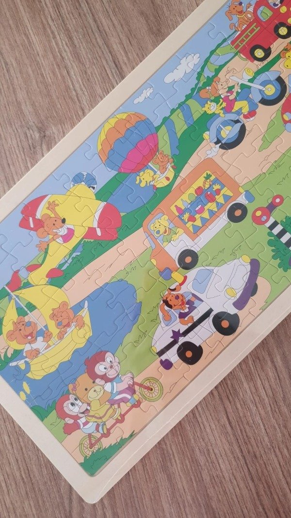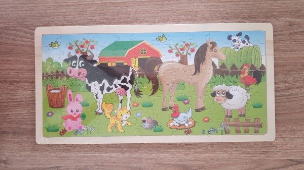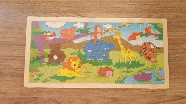 Tabla con 96 piezas de madera fina. En su base contiene el mismo dibujo a armar.