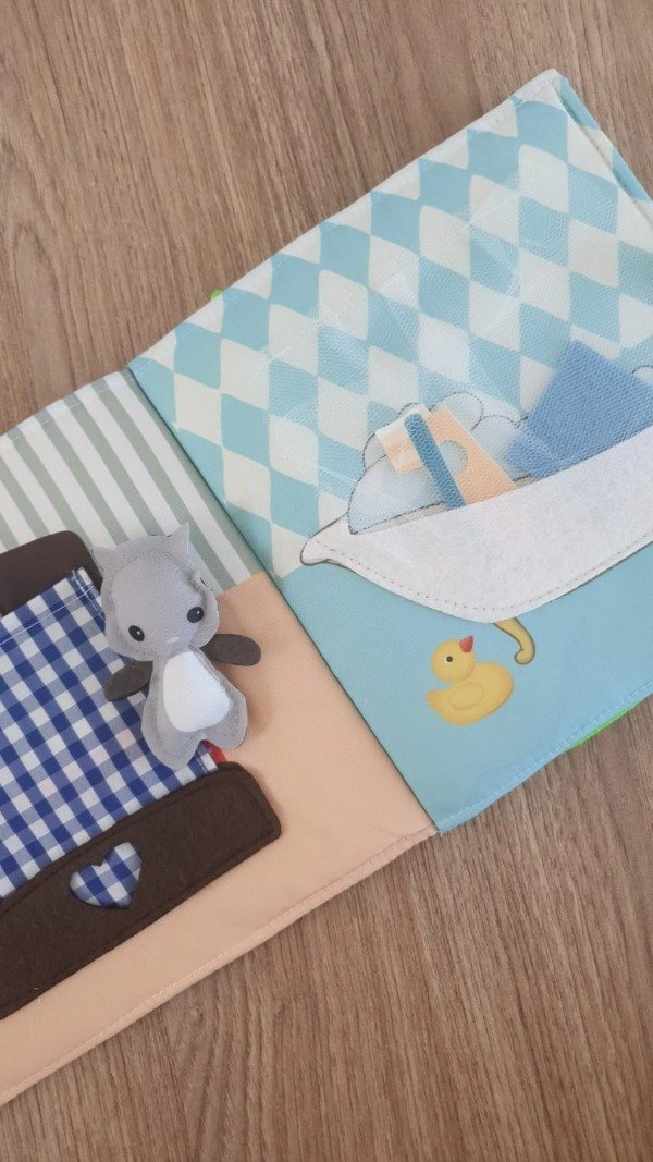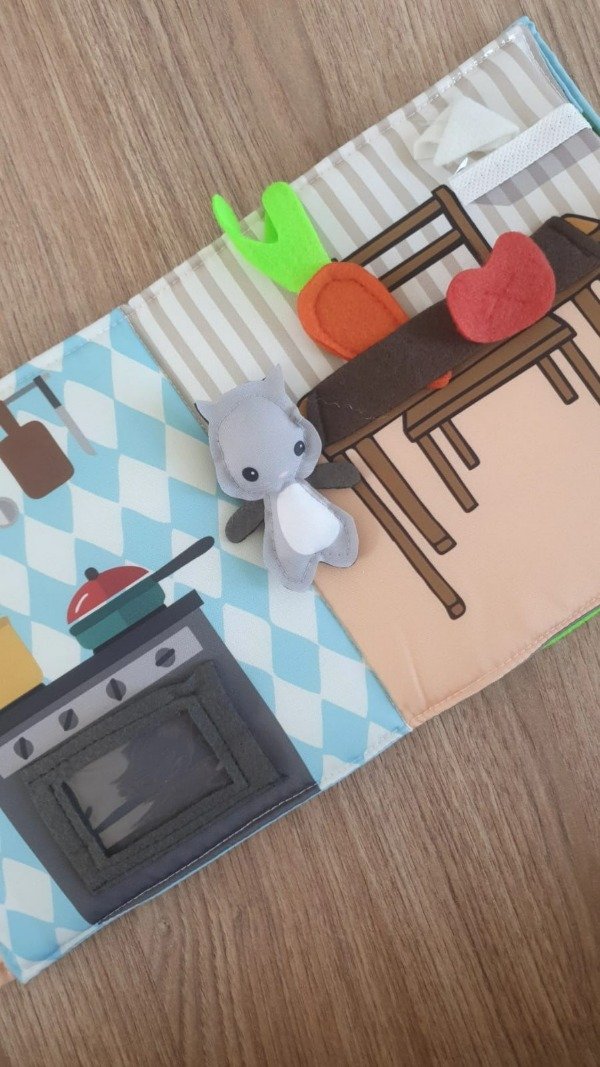 Este libro sensorial es la historia de un gatito que vive en su casa y desarrolla muchas tareas. No contiene texto, es un libro de escena, lo que nos permite crear una historia diferente cada día, estimulando la imaginación y creatividad así como también estimula a adquirir habilidades cognitivas y emocionales.